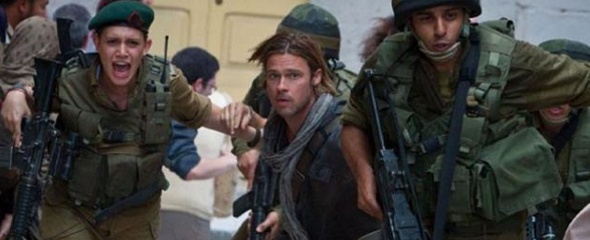 Tratto dall’omonimo best seller di Max Brooks (figlio del mitico Mel Brooks, e di Anne Bancroft), World War Z esordisce con una teoria catastrofista poco dissimile da quella appena espressa, ma dopo le prime scene, la storia sterza decisamente in direzione di un’avvincente avventura umana finalizzata al salvataggio del mondo. E come in ogni avventura che si rispetti, epica o fantascientifica che sia, c’è sempre in gioco la vita e la dignità di un eroe. In questo caso Gerry Lane (Brad Pitt, protagonista, nonché produttore del film), un agente speciale dell’ONU che ha scelto di godersi la serenità della propria famigliola in quel di Philadelphia (location pure de L’Esercito delle 12 Scimmie, con lo stesso Pitt), nello stato della Pennsylvania (omaggio al primo film della tetralogia dei morti-viventi di Romero?). Ma un mattino, accompagnando moglie e figlie, rimane bloccato con l’auto in un ingorgo inestricabile. Immediatamente dovrà mettersi in salvo con i suoi cari per sfuggire all’assalto letale di centinaia di esseri subumani che in preda a un agente patogeno sfogano la loro furia nel cannibalismo, reiterando in pochi minuti la tremenda infezione. In breve le orde fameliche degli zombi hanno distrutto metropoli e piccoli centri, devastato interi territori, minacciando la sopravvivenza dell’intera razza umana. Tradotto dopo alcune peripezie su una portaerei sull’Atlantico, Lane dovrà lasciare al sicuro i familiari e guidare una missione impossibile che scopra le cause e le modalità di diffusione di questa malattia sconosciuta, prima che si realizzi l’Apocalisse. Dopo il superamento di prove assai pericolose tra Corea, Israele e Galles, Gerry tenterà d’individuare la chiave per bloccare la pandemia, magari attraverso un vaccino che possa consentire al genere umano di combattere efficacemente, e prevalere, nella guerra mondiale degli zombi…