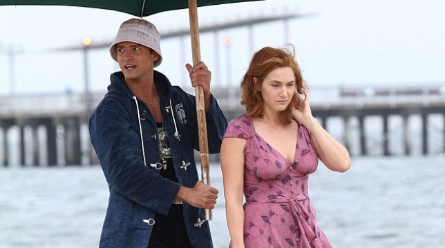 Nelle immagini, Kate Winslet e Justin Timberlake durante le riprese.